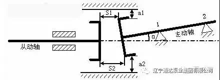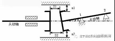 3)S1≠S2,a1=a2 兩半靠背輪端面雖然同心但不平行,兩軸線之間有角向位移α。